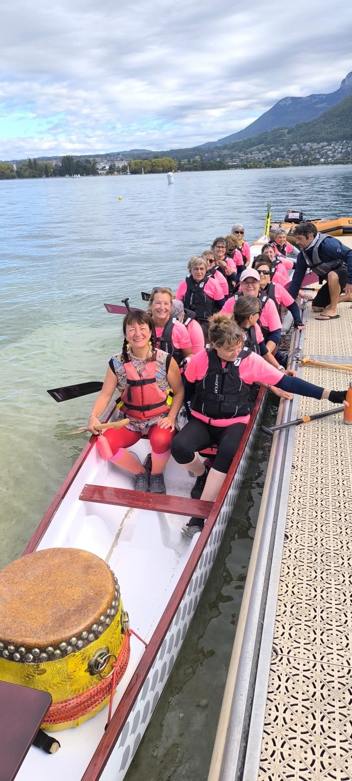 Cette année encore nous étions présentes au festival de Dragon Boat sur le magnifique lac d’Annecy les 4 et 5 octobre 2025. WE sportif et convivial avec des courses de 100m, 200m et 1200 m avec une très belle 4ème place au 200 m à l ‘arrivée d’une course de finale B très disputée !
